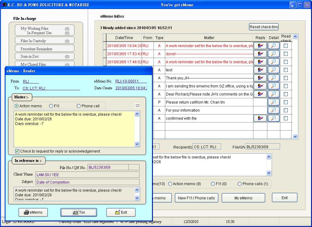 Reading eMemo